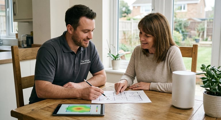Once we’re finished, we’ll do another cold spot test (the same test as we did in the consultation) to show exactly how your WiFi has improved. This helps us catch any 'real world' hurdles we didn't see during our first visit, ensuring your home is perfectly connected before we leave.